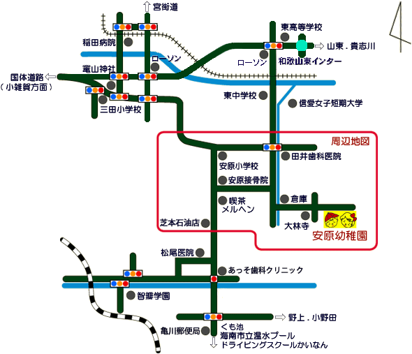 *本園前の道は狭くなっていますので、お車で来園される場合は低速走行を心がけ、 十分に気をつけて走行されますようお願いいたします。